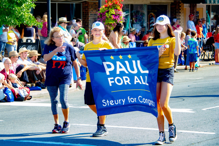 Gathering together with the ACT banner leading the way, we hand out small American flags and greet our neighbors while we walk together in the parade. Democratic candidates for local and state offices join us and hand out their literature. Adults, children, and grandchildren all have fun!